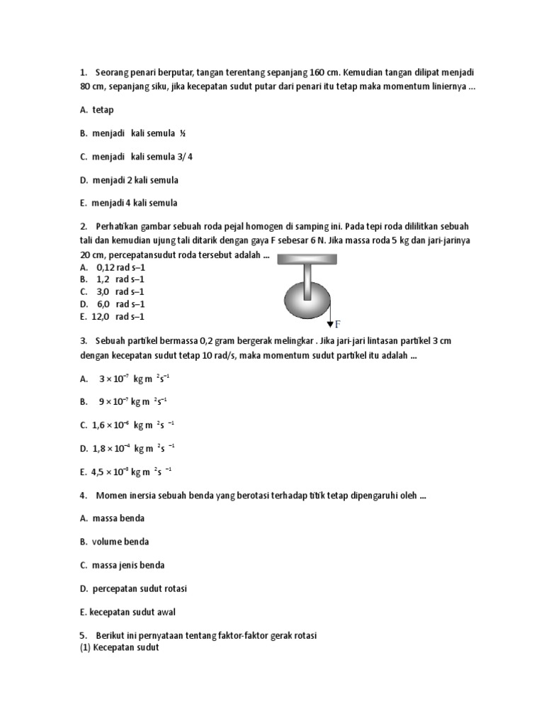 Soal tentang momen inersia ebtanas 2002 momen inersia sebuah benda yang berotasi terhadap titik tetap dipengaruhi oleh. Kecepatan sudut awal pembahasan momen inersia jadi momen inersia bergantung dari m (massa) dan r (jarak benda ke pusat rotasi) uan 2003 jawaban a 9. (seperti massa pada gerak translasi) answers.