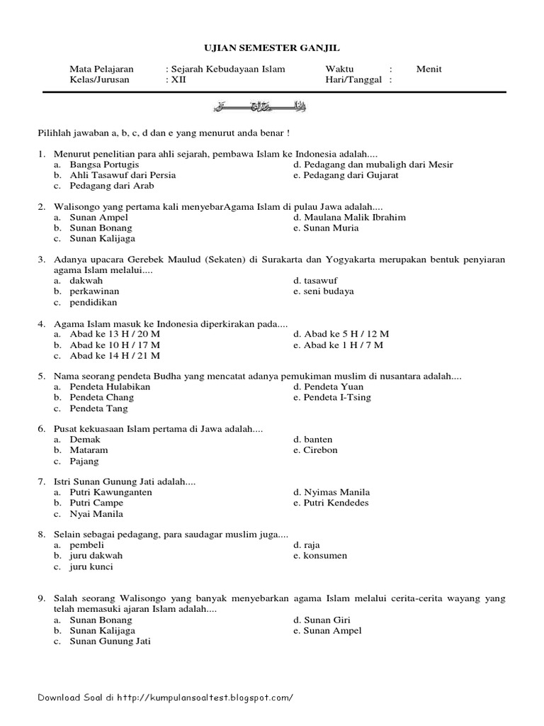 Soal Ulangan Ski Kelas Xii Man 2 Cilacap Pdf